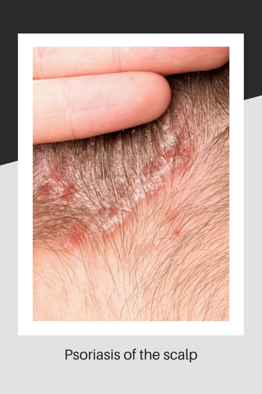 A healthy scalp is clear, flake-free, with no crusts and a normal texture. Not oily or dry.
